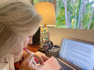 En mi último libro, «Maruja», la protagonista habla siempre en presente directamente al lector. Para mí ha sido un reto que creo he conseguido (modestia aparte), pues he creado un personaje y también la narrativa en tiempo presente, haciendo que el lector entre de lleno en la historia que ella misma va relatando.